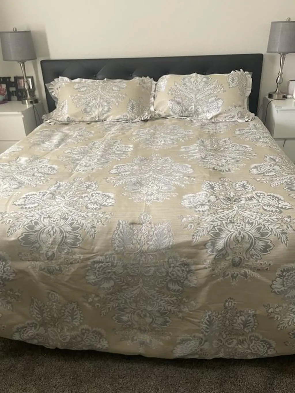 - Set includes 1 comforter, 2 shams, 1 bed skirt