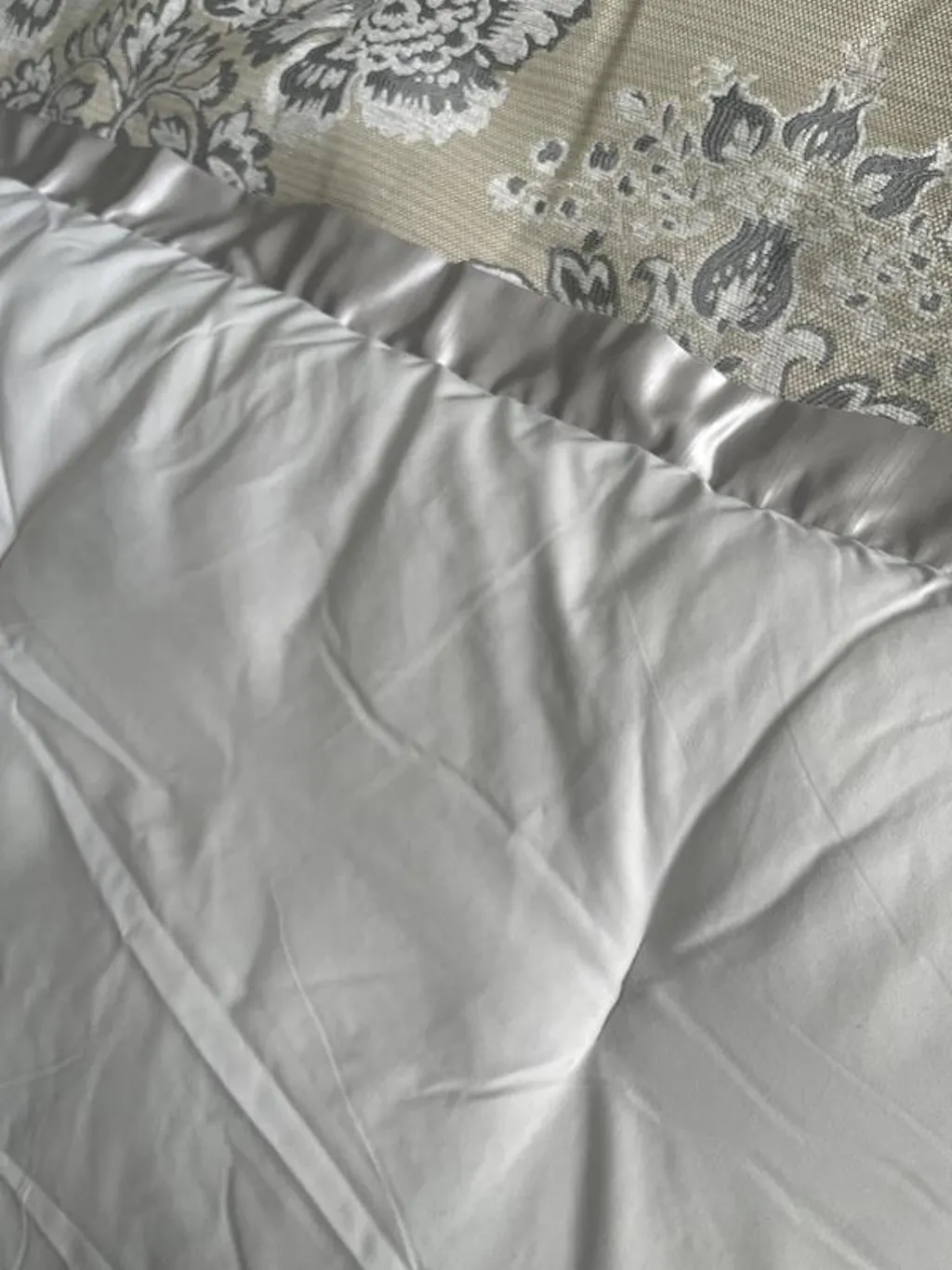 - The bedskirt features an antique satin look, capturing a soft luxurious sheen to the texture